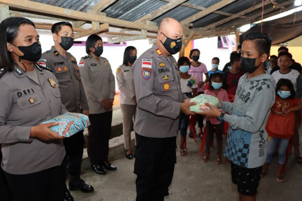 ”Giat berdiakonia ini, jangan dilihat dari apa yang diberikan, tetapi makna yang tulus yang diberikan. Semoga selalu bahagia dan sukacita berada di tempat ini,” kata AKP Yacobus Melale.