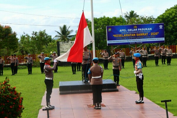 TALAUD, Humas Polda Sulut – Kepolisian Resor (Polres) Kepulauan Talaud menggelar upacara bendera memperingati Hari Kesadaran Nasional, di halaman Markas Komando Polres Kepulauan Talaud, Rabu 18 Februari 2026. Bertindak selaku Inspektur Upacara, Wakapolres Kepulauan Talaud Kompol Kretsman Mulalinda.