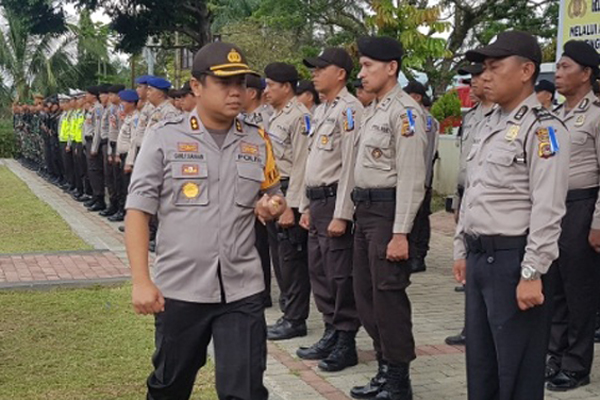 MANADO, Humas Polda Sulut – Kapolres Kotamobagu AKBP Gani F. Siahaan pimpin Apel Gelar Pasukan Operasi Lilin Samrat 2018, di Mapolres Kotamobagu, Jumat (21/12/2018). Pihaknya menyatakan kesiapan menghadapi pengamanan Natal dan Tahun Baru,