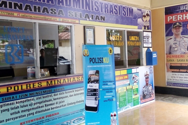 MANADO, Humas Polda Sulut – Polres Minahasa Selatan (Minsel) sosialisasikan layanan pengaduan kepolisian online bernama “POLISIKU”, Senin (12/06/2017). Sosialisasi aplikasi berbasis teknologi android ini dilakukan dengan memasang banner dan spanduk di ruang-ruang pelayanan masyarakat di Mapolres Minsel, antara lain ruang SPKT, SIM, SKCK dan Samsat.