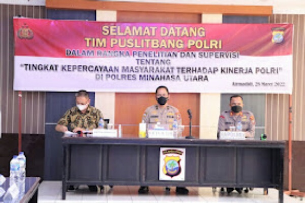 MANADO, Humas Polda Sulut – Tim Pusat Penelitian dan Pengembangan (Puslitbang) Polri melaksanakan penelitian dan supervisi terkait tingkat kepercayaan masyarakat terhadap kinerja Polri di Polres Minahasa Utara, Senin (28/3/2p22).