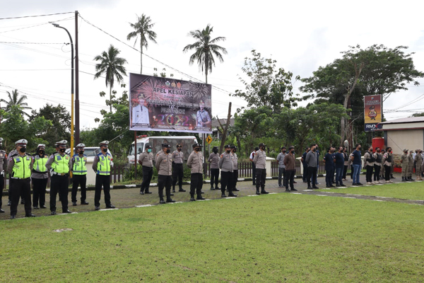 Dengan peserta apel terdiri dari personel Polri, TNI, Sat Pol PP, Dinas Perhubungan, Dinas Kesehatan, BPBD, dan Dinas Pemadam Kebakaran.