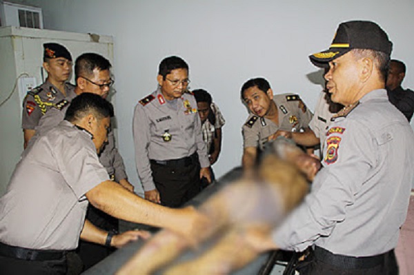 Kapolda Sulut Brigjen Pol Drs. Wilmar Marpaung, SH turut prihatin dan berbela sungkawa atas musibah yang terjadi dan pagi hari usai apel pagi, Rabu (10/2) langsung menjenguk Pelaku yang telah terbujur kaku di ruang pemulasaran jenazah RS Bhayangkara, Karombasan Manado.