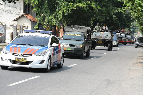 Dengan Rute Berawal dari melaksanakan apel yang di pimpin oleh AKP Suyono Kanit Patroli Sabhara di Mapolresta Surakarta berlanjut Ke kediaman Presiden RI, Mojosongo, Jurug, Gladak, Pasar Kliwon dan Berakhir di Mapolresta Surakarta.patroli Gabungan antara TNI dan Polri yang dilaksanakan secara rutin ini bengan tujuan memberi kenyamanan, ketenangan dan kondusifitas di Kota Bengawan, Terlebih Solo sering di kait-kaitkan dengan Otak pengeboman di Tamrin.