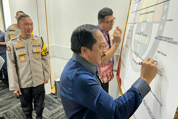 Jakarta. Polri melalui Divisi Humas menggelar deklarasi Pemilu Damai bersama Asosiasi Penyelenggara Telekomunikasi Seluruh Indonesia (ATSI) hari ini (13/12/23). Setidaknya lima perwakilan perusahaan telekomunikasi menghadiri deklarasi Pemilu Damai ini.