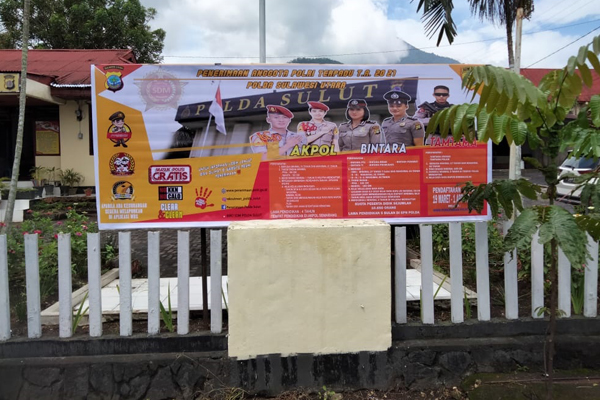 Selain itu, Baliho pun dipasang di sejumlah tempat strategis, salah satunya di depan Mapolsek Airmadidi. Diharapkan lewat baliho ini, masyarakat pengguna jalan terutama yang melintasi ruas jalan utama Manado-Bitung, dapat mengetahui serta turut menyampaikan kepada sanak maupun kerabat mereka terkait Penerimaan Anggota Polri secara terpadu.