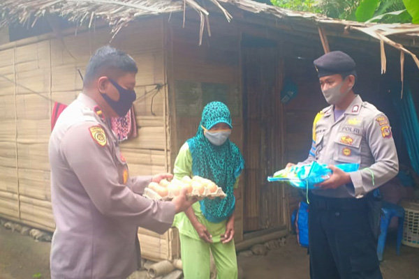 Selain sembako, Kapolsek juga memberikan bantuan berupa satu lusin kain sarung untuk para jamaah. Bantuan tersebut diterima langsung oleh Imam Masjid Nurul Jihad Bawunian.