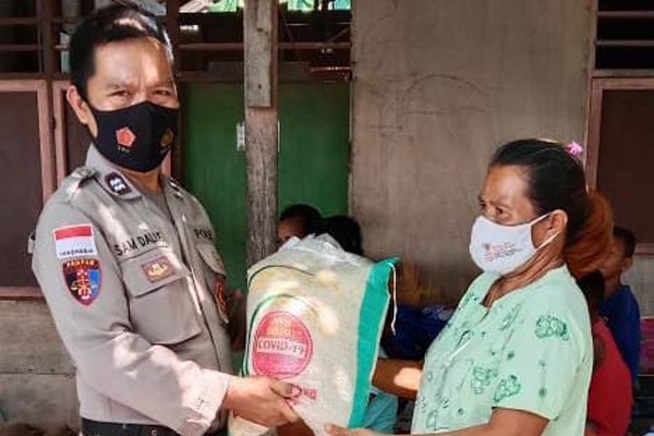 “Bansos berupa beras. Disalurkan kepada 50 kepala keluarga terutama yang terdampak ekonomi akibat pandemi Covid-19, masing-masing kepala keluarga mendapat 10 kilogram beras,” ujarnya, Senin siang.