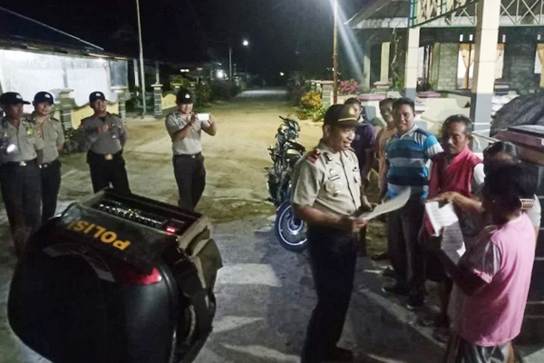MANADO, Humas Polda Sulut – Kapolsek Nanusa, Ipda H.G. Kilare bersama anggota memberikan sosialisasi pencegahan penyebaran Virus Corona, Sabtu (21/03/2020) malam, di wilayah Desa Karatung, Kecamatan Nanusa, Kabupaten Kepulauan Talaud.
