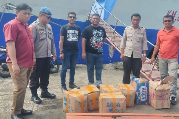 Petugas memeriksa sejumlah kapal yang sedang tambat di pelabuhan. Hasilnya, pada sebuah kapal tujuan Tagulandang-Siau, tepatnya di pantry dek 4, ditemukan 5 kardus miras jenis cap tikus yang dikemas dalam plastik bening. Total barang bukti yang berhasil diamankan kurang lebih 125 liter cap tikus.