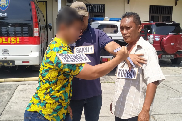 Tersangka langsung mengambil sebilah pisau badik yang ditaruhnya di tanah, lalu menghampiri korban. Saat keduanya berhadapan, korban mendorong tersangka dengan tangan kanan.