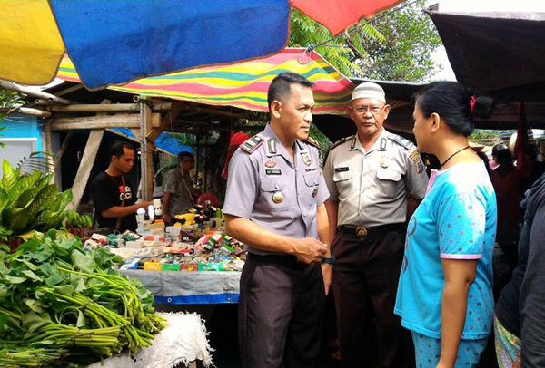 MANADO, Humas Polda Sulut – Kapolsek Sinonsayang Minahasa Selatan, Iptu Alex Karundeng bersama personel Bhabinkamtibmas dan tim patroli mengadakan kegiatan sambang di pasar tradisional Desa Ongkaw, Kecamatan Sinonsayang, Rabu (29/03/2017) siang.
