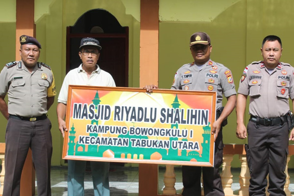 MANADO, Humas Polda Sulut – Polsek Tabukan Utara terus menggelorakan program memakmurkan rumah ibadah. Dilakukan melalui berbagai cara, salah satunya dengan memberikan bantuan berupa papan nama masjid.