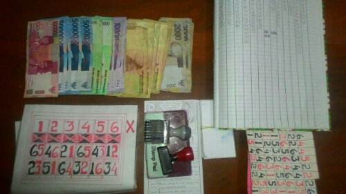 Dari hasil penangkapan tersebut berhasil mengamankan barang bukti berupa 1 lembar Paito, 1 bendel Sonji, 1 Bolpoin, Daftar catatan angka keluar, Keplek, Handphone Nokia warna Biru Hitam, 2 buah Stempel, Bantalan Cap, Buku Rekapan, Uang tunai sebesar Rp. 510.000,-