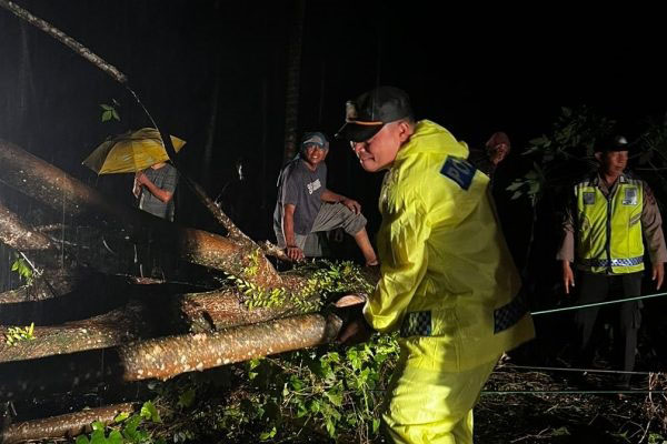 “Begitu mendapat laporan, kami langsung menuju lokasi untuk memastikan tidak ada korban dan segera mengevakuasi pohon tumbang agar jalan kembali bisa dilalui,” ujar Ipda Novry.