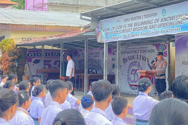 Kepala Sekolah SMK Kristen 2 Tomohon Drs. Novrie Sumampow menyampaikan apresiasi dan terima kasih kepada Sat Binmas Polres Tomohon atas kegiatan edukatif tersebut.