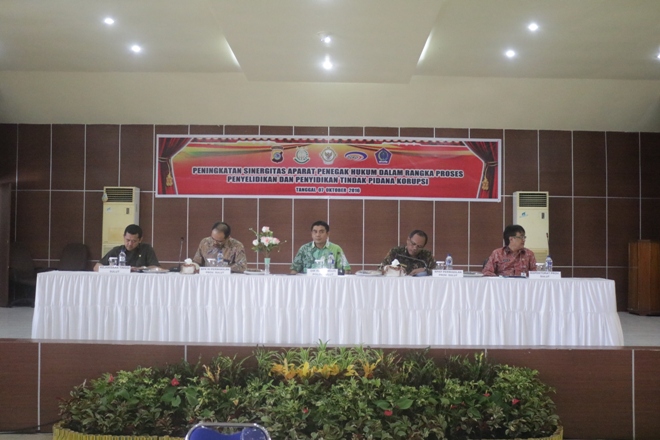 MANADO, Humas Polda Sulut – Direktorat Reserse Kriminal Khusus (Dit Reskrimsus) Polda Sulut rapatkan barisan bersama instansi terkait dalam menangani masalah korupsi. Hal ini diwujudkan dengan menggelar rapat koordinasi (rakor) bertajuk “Peningkatan Sinergitas Aparat Penegak Hukum Dalam Rangka Proses Penyelidikan dan Penyidikan Tindak Pidana Korupsi”, Jum’at (07/10/2016) pagi.