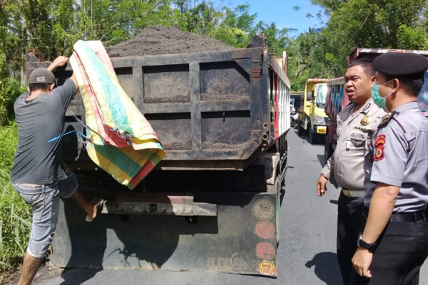 MANADO, Humas Polda Sulut – Wujud kepedulian Polri kepada masyarakat, Kanit Shabara Ipda Steven Surentu dan Kanit Lantas Aiptu Maykel Ukoli memberikan teguran terhadap pengendara truck muatan pasir berlebihan.