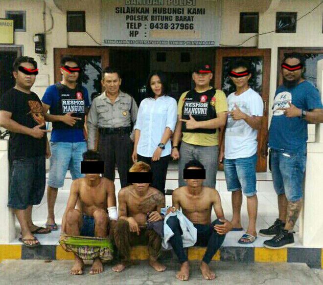Berdasarkan laporan tersebut tim segera melakukan pengejaran dan berhasil meringkus salah seorang anggota sindikat, RH alias Ran (18), warga Kecamatan Matuari, Kota Bitung. Dari hasil pengembangan, tim juga mengamankan dua pelaku lainnya yaitu MH (18) alias Kelo, warga Kecamatan Madidir dan NG alias Opo (34), warga Kecamatan Girian, Kota Bitung. Ketiga pelaku diamankan di rumahnya masing-masing.