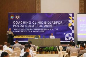 MANADO, Humas Polda Sulut – Irwasda Polda Sulut Kombes Pol Amin Litarso secara resmi membuka kegiatan Coaching Clinic Bidlabfor Polda Sulut T.A. 2026 yang diselenggarakan di Hotel Peninsula Manado pada Kamis, 12 Februari 2026.