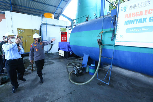 BALI – Kapolri Jenderal Polisi Listyo Sigit Prabowo meninjau langsung pabrik minyak goreng PT Sawit Tunggal Arta Raya (STAR) Bali, di Pelabuhan Benoa, Kota Denpasar, Bali, Jumat (18/3/2022).