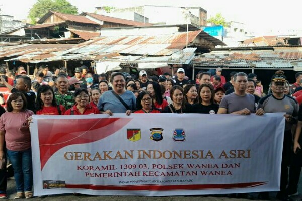 MANADO, Humas Polda Sulut – Personel Polsek Wanea bersinergi dengan Koramil 1309-03 serta Pemerintah Kecamatan Wanea menggelar Gerakan Indonesia Asri berupa kerja bakti di kawasan Pasar Pinasungkulan, Kelurahan Karombasan Utara, pada Jumat pagi (13/02/2026).