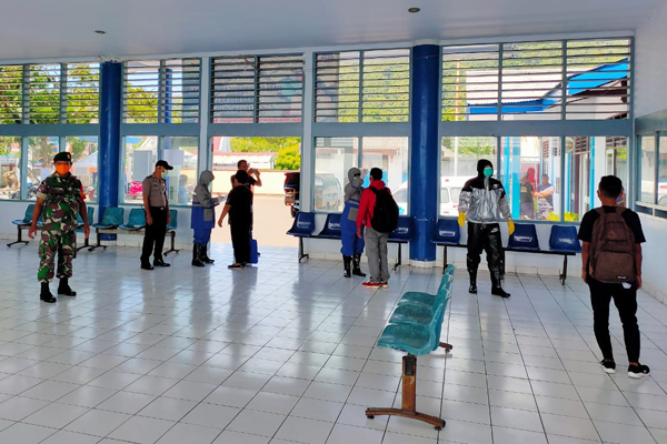 Terpantau sebanyak 16 orang penumpang turun dari kapal KM Expres Bahari dan diarahkan petugas menuju ruang tunggu.