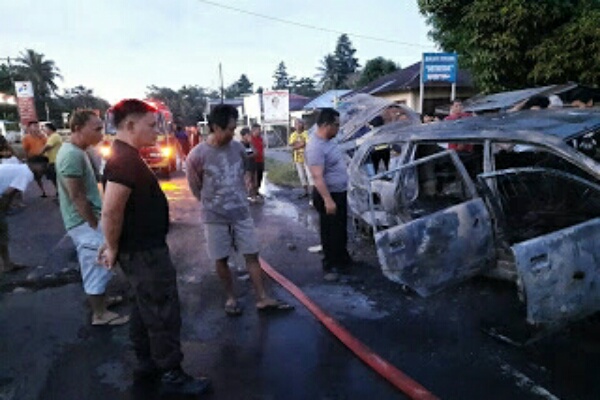 MANADO, Humas Polda Sulut – Kendaraan jenis Minibus Toyota Avanza warna putih silver bernomor polisi DB 1924 MV terbakar pada Sabtu dinihari (14/03/2020), di Jalan Trans Sulawesi, Desa Tumpaan Dua, Kecamatan Tumpaan, Kabupaten Minahasa Selatan.